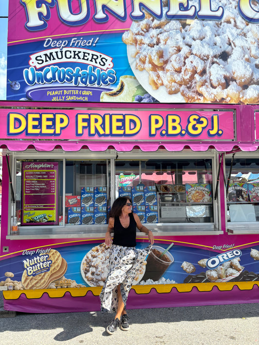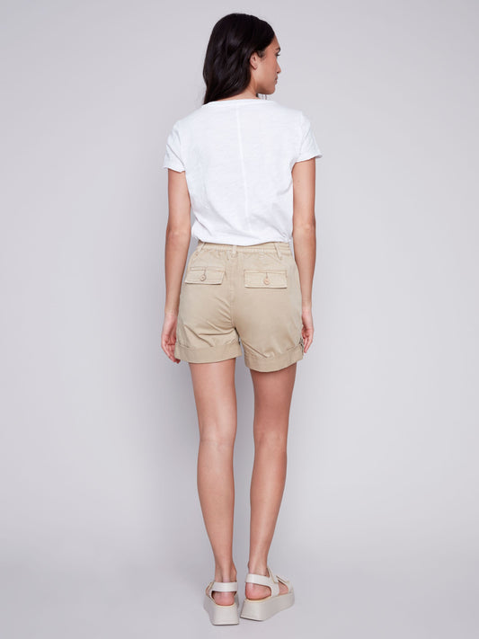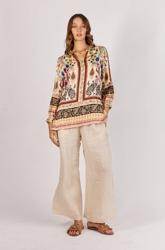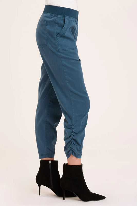 Charlie B Linen Jogger Pants with Button Detail - Blue Floral