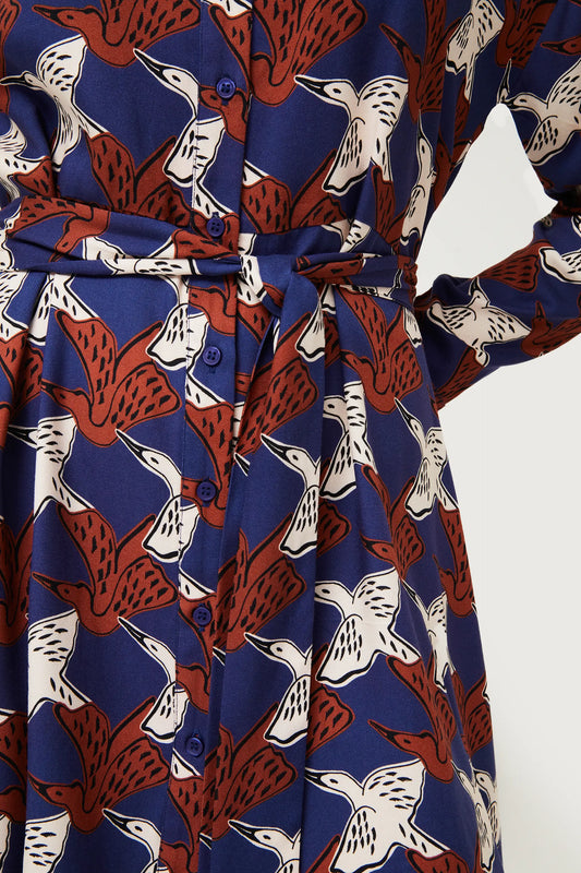 Compania Fantastica Garza Heron Print Shirt Dress - Blue/Rust
