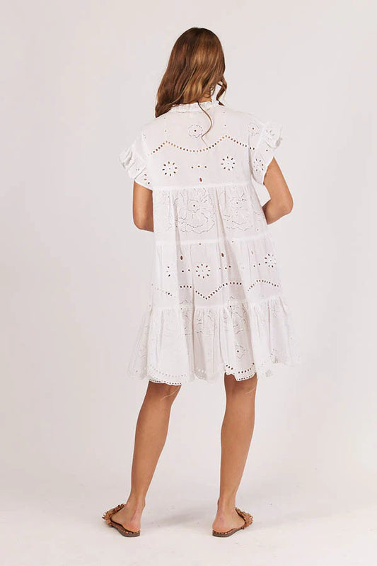 Nibi MTK Gibson Mini Dress Blue Embroidery