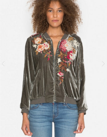 Johnny Was Chrys Velvet Bomber Jacket Hunter Green