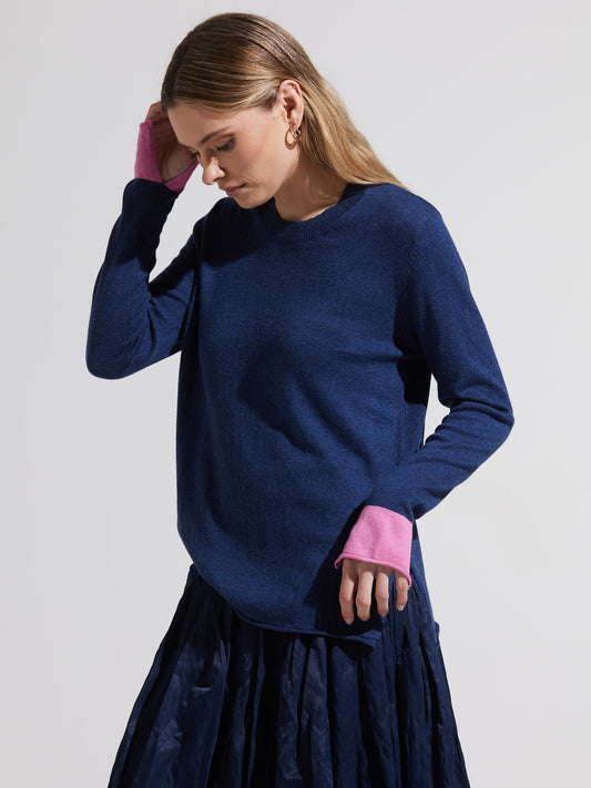 1/4 Zip Stripe Sweater Navy / Light Blue
