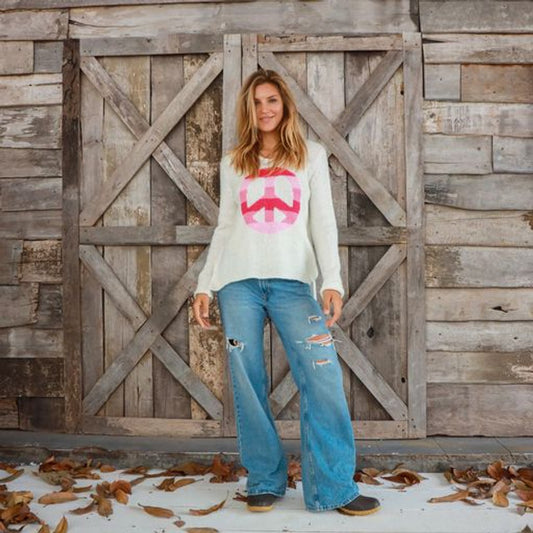 Wooden Ships Rainbow Peace Hoodie Sweater-Snow/Pink
