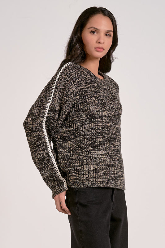 Elan Marl Whipstitch Sweater - Black/Brown