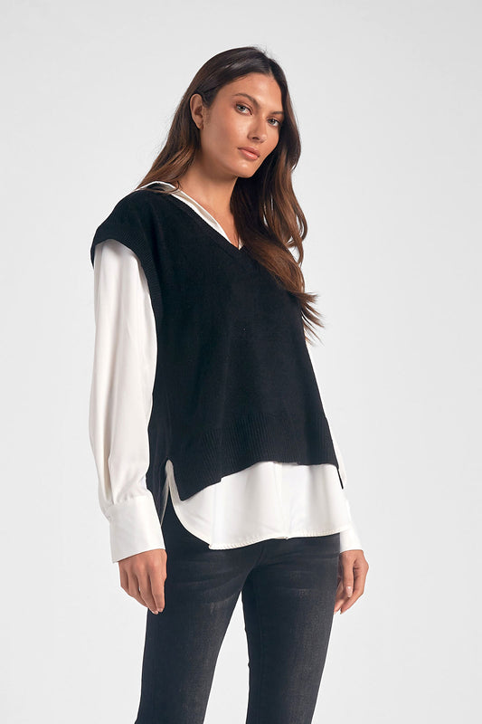 Charlie B Plushy V-Neck Stitch Sleeve Detail-Heather Denim
