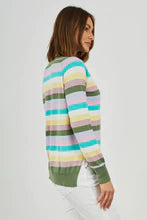 Tribal Tribal Multi Stripe Textured Boat Neck Sweater Sandstone