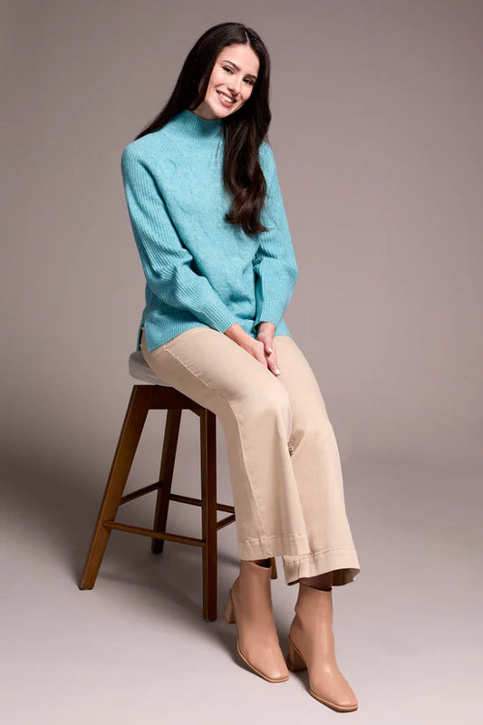 Tribal Long Puff Sleeve Mock Neck Sweater Mistblue