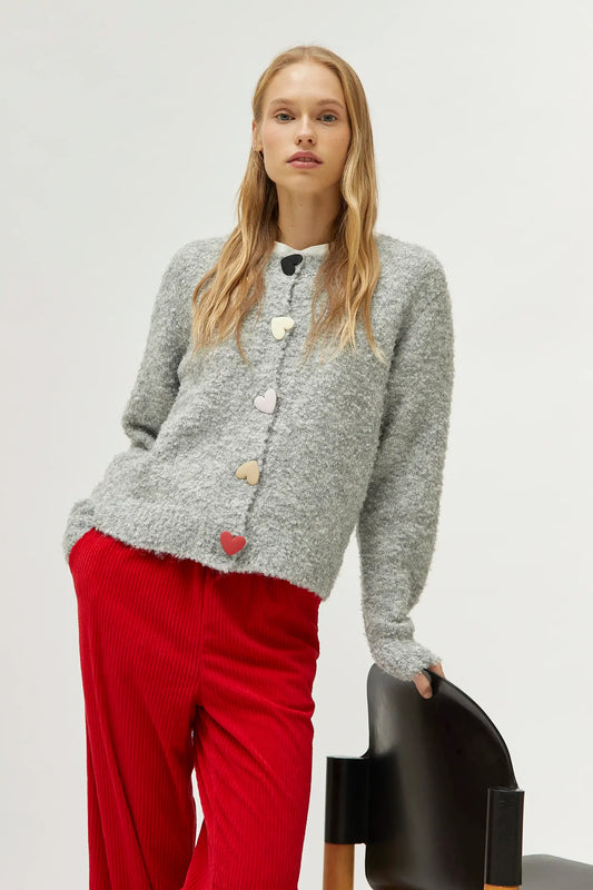 Compania Fantastica Heart Button Cardigan Sweater - Gray