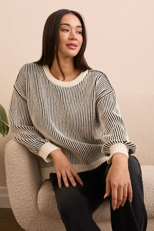 Tribal Plaited Chenille Crew Neck Ribbed Sweater - BlackRegular price $122.00 USDRegular priceUnit price / per-