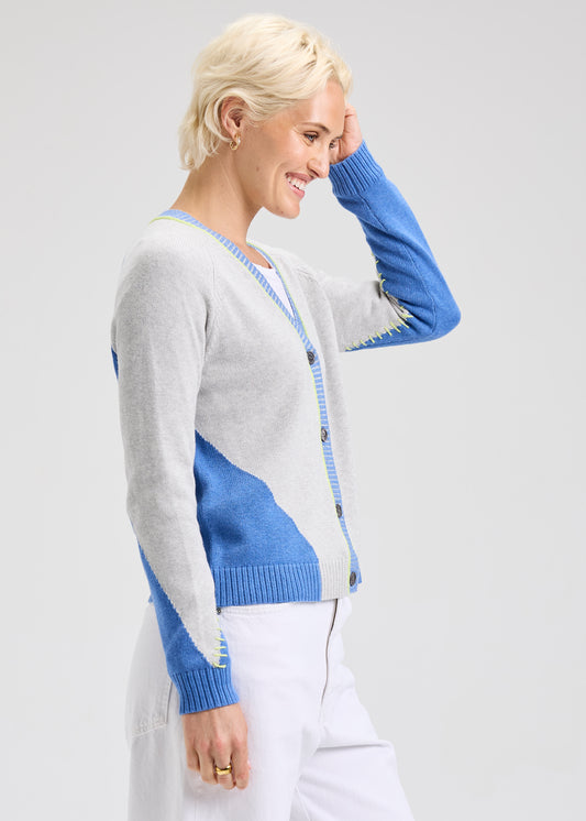 Zaket & Plover Paneled Cardi Sweater Chambray