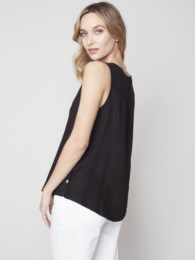 Charlie B Sleeveless Linen Top with Side Buttons