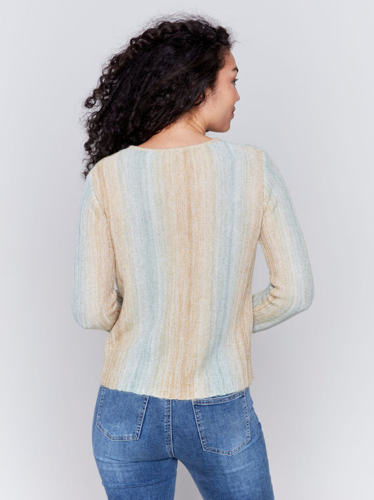 Charlie B Hairy Space Dye Yarn Crop Sweater Matcha