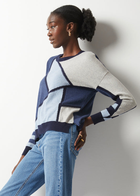 Zaket & Plover Mosaic Intarsia Sweater - Marine