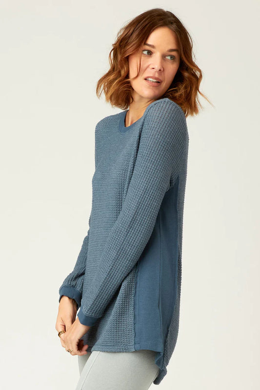 Project Social Insider Tie Dye Mesh Mock Neck Stormy Horizon