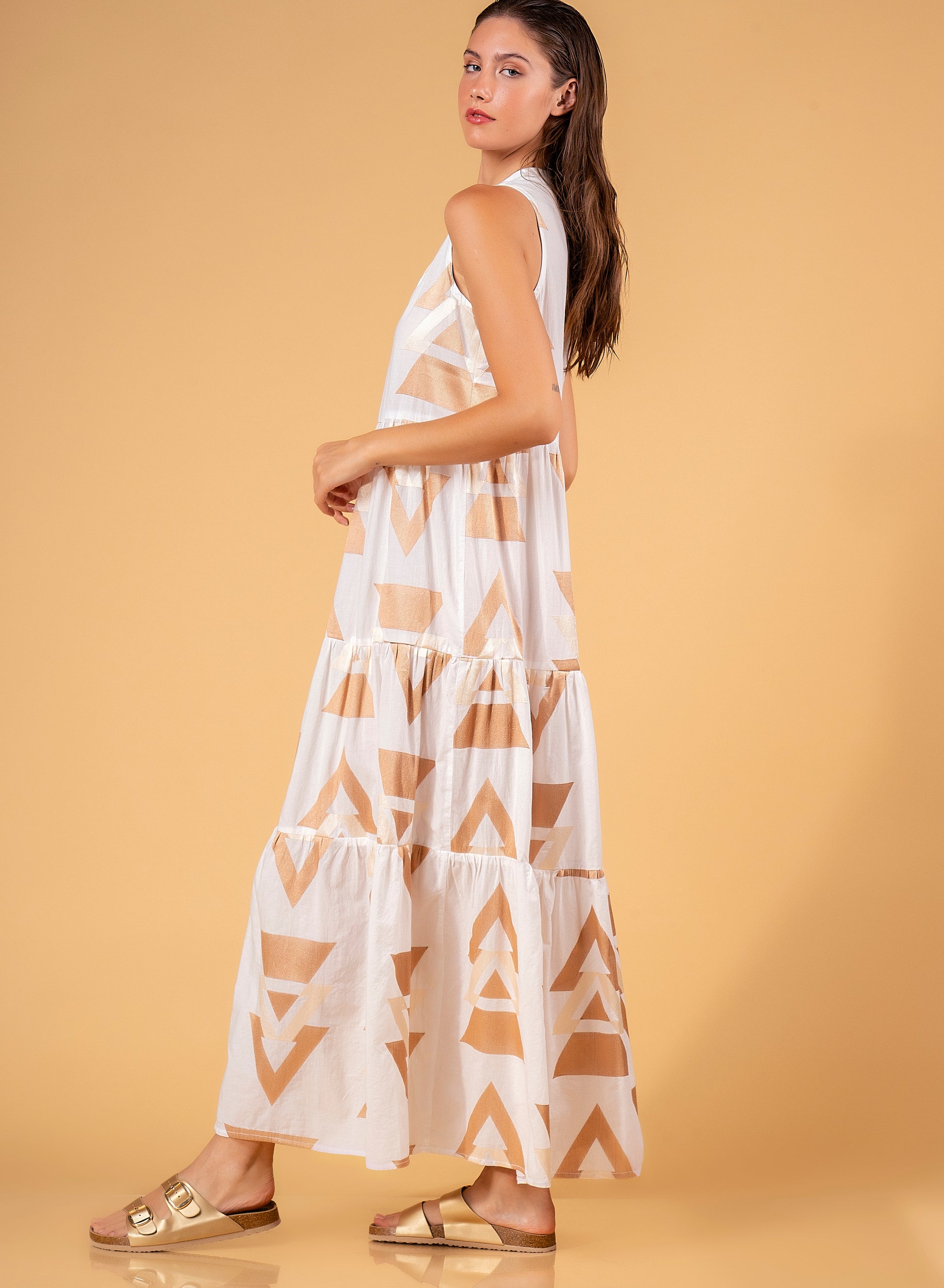 Aether Concept S/L Maxi Dress Off White / Bronze