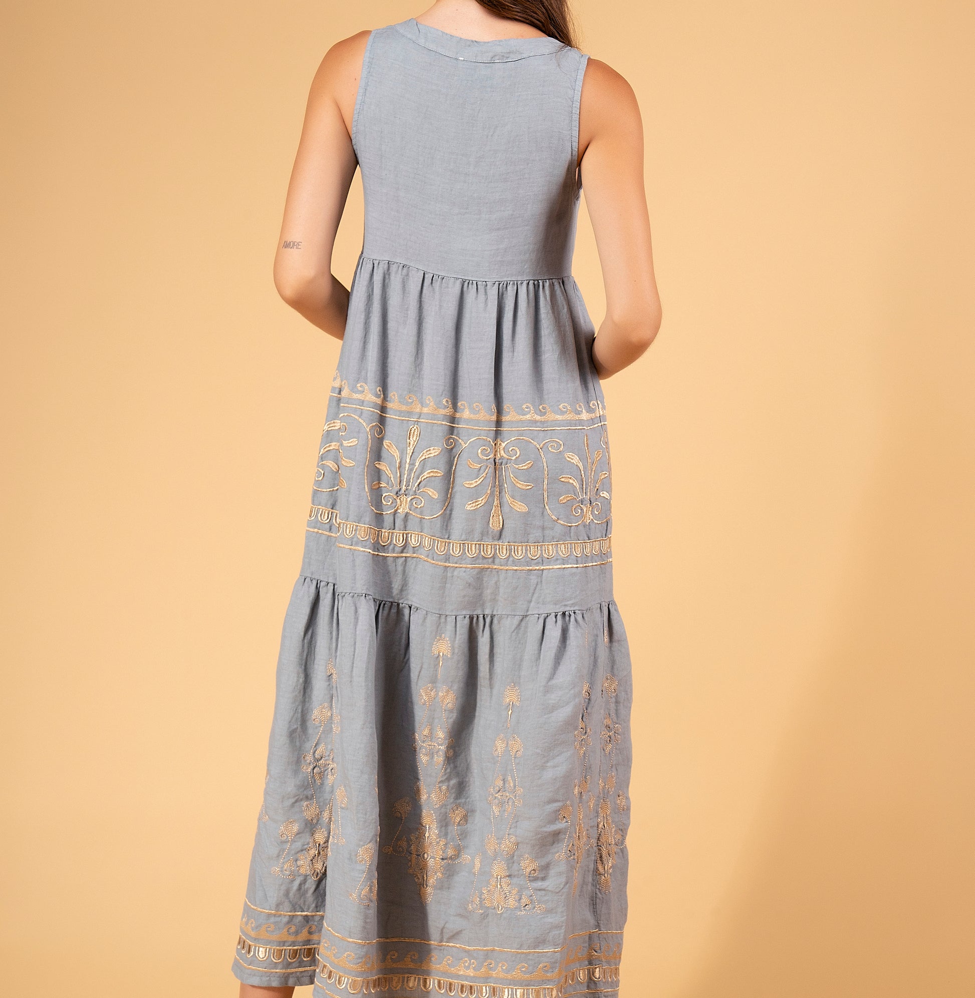 Aether Concept S/L Linen Midi Dress Grey / Gold