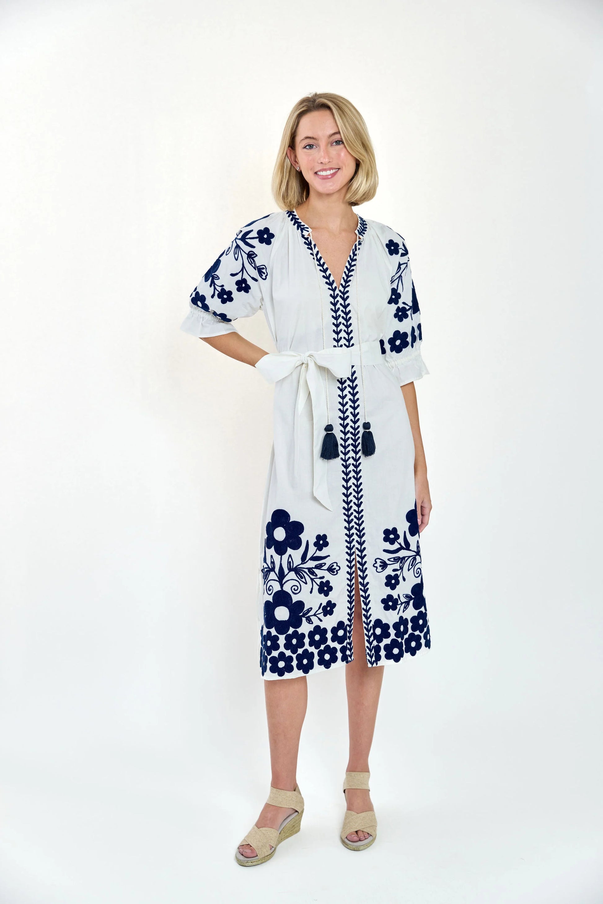 Say hello to effortless elegance with the Rosie Dress! Featuring a flowy silhouette and beautifully embroidered details, the Rosie Dress is your go-to for casual chic vibes. With its lightweight fabric, flattering fit, and eye-catching floral design, this dress is as versatile as it is comfortable. Perfect for brunch with friends, a stroll through town, or a seaside dinner, the Rosie Dress makes every occasion feel special.