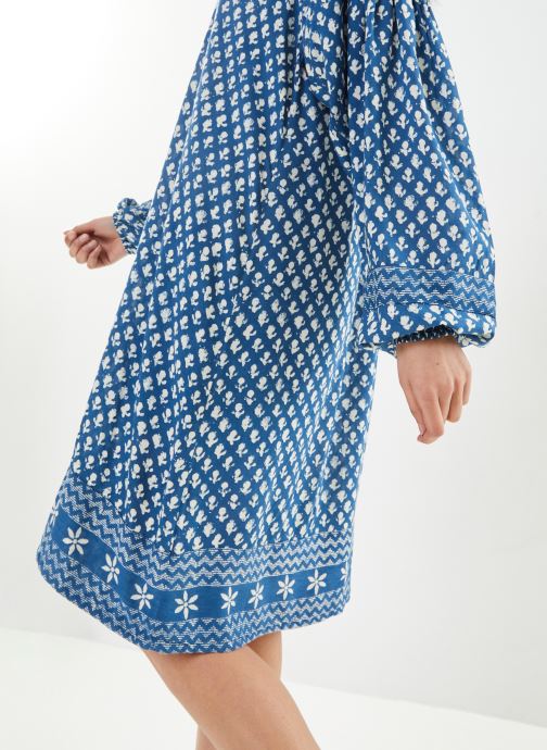 Cut in soft viscose modal, this easy to wear v-neck midi dress features a gorgeous small-motif, vintage-inspired indigo print with a contrast border.