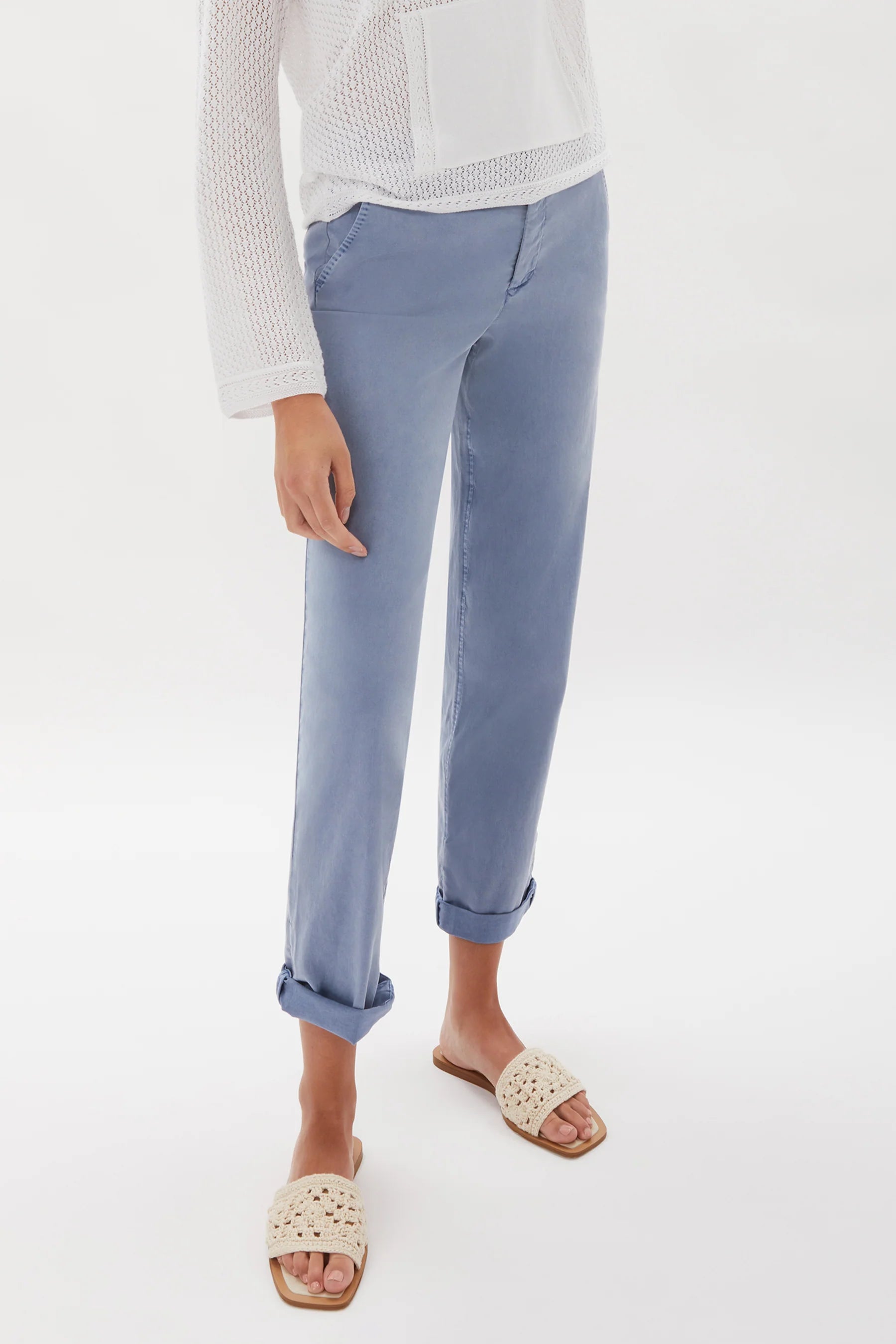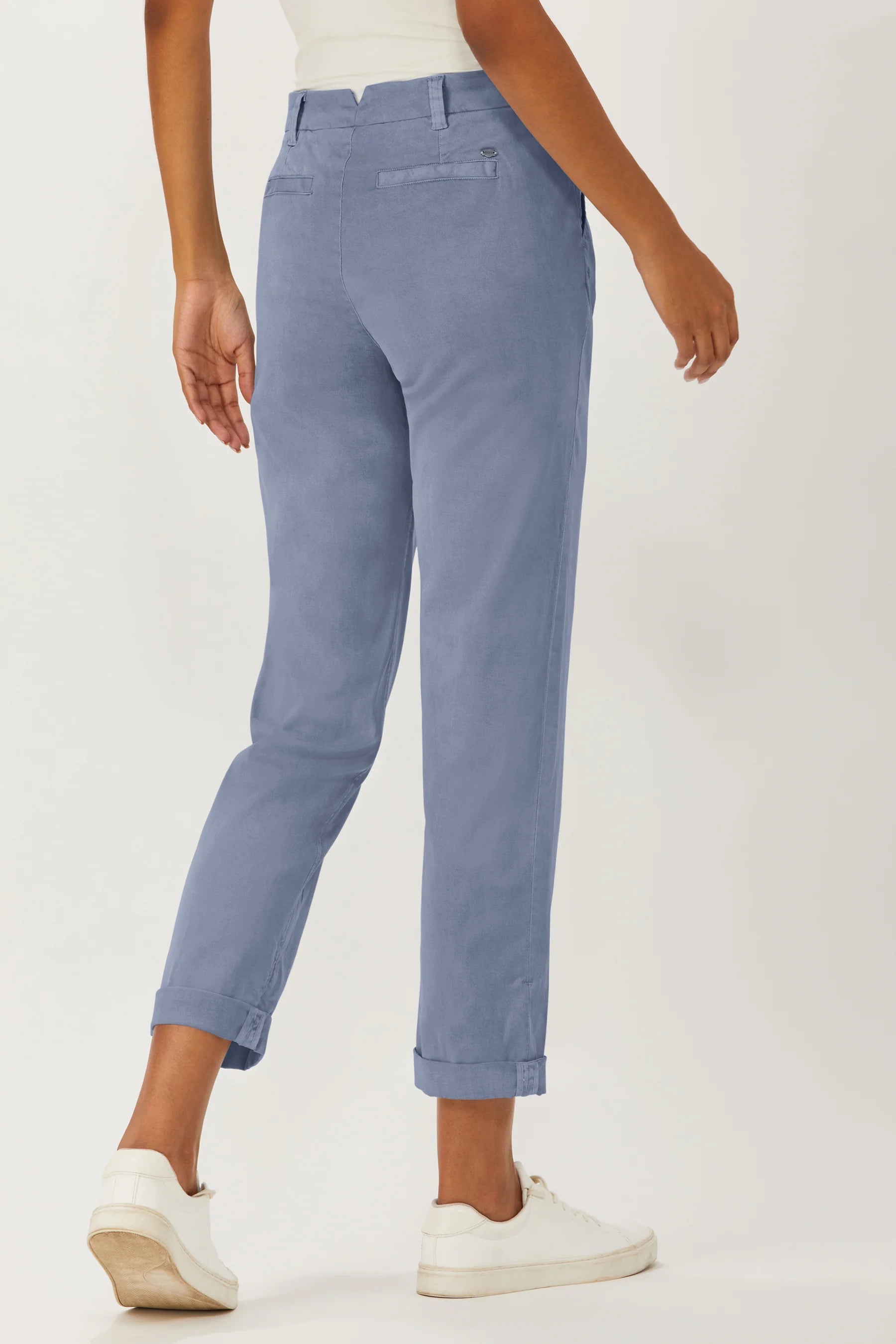 A classic chino pant - secure at the waist and hips, a universally flattering rise, and easy and relaxed through the leg with a slightly wider leg opening to make it easy to roll the cuff. Refer to our size chart to find your size.