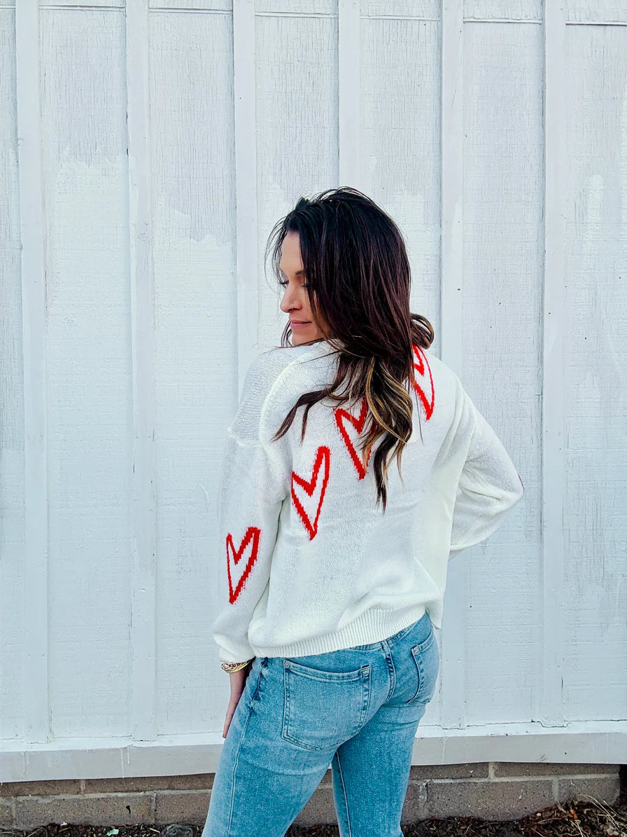 Elan Heart Sweater White/Red