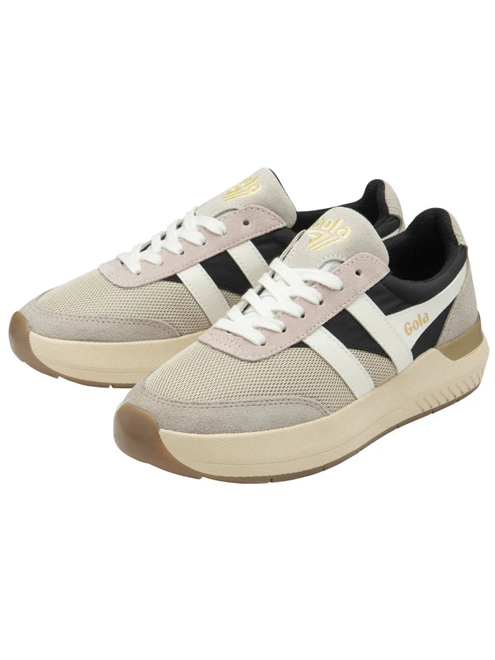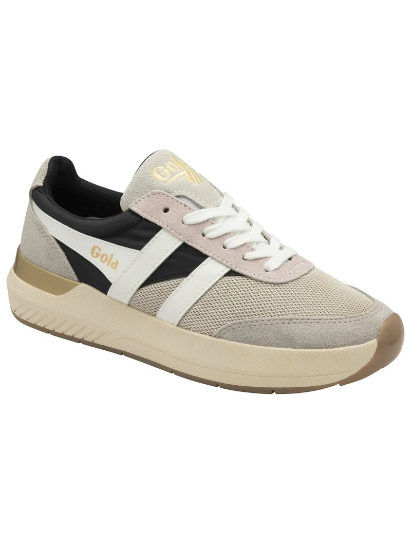 Elevating the humble trainer to be a statement footwear choice is Gola Raven. Served up with contrasting color pairing, there’s no disputing that high octane fashion is back! Mesh with coral pink, royal purple and evergreen are contrasted with wheat and an off white sole to a powerful effect in this striking women’s trainer.