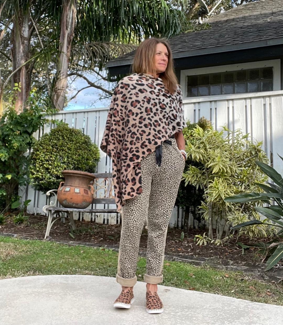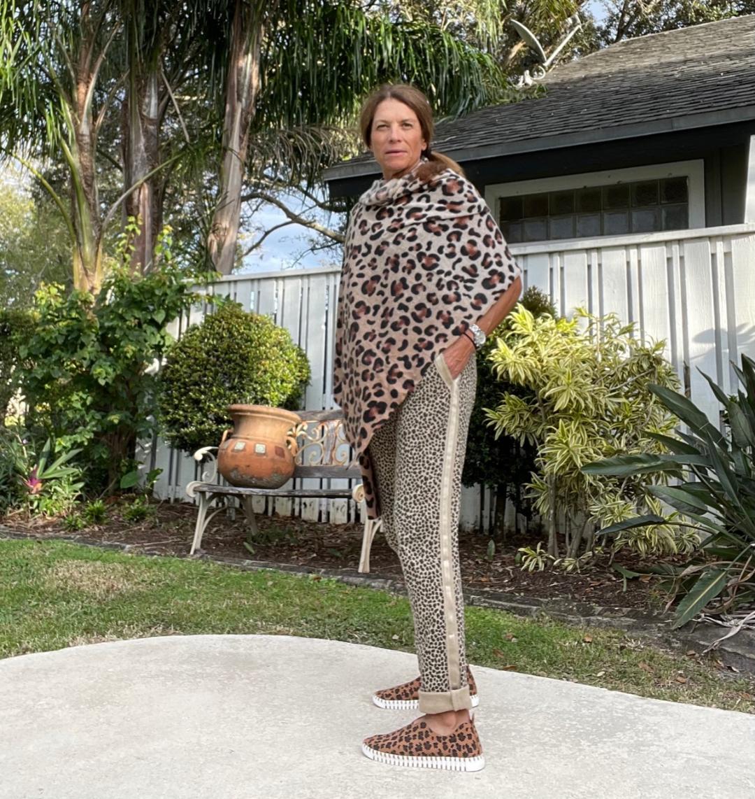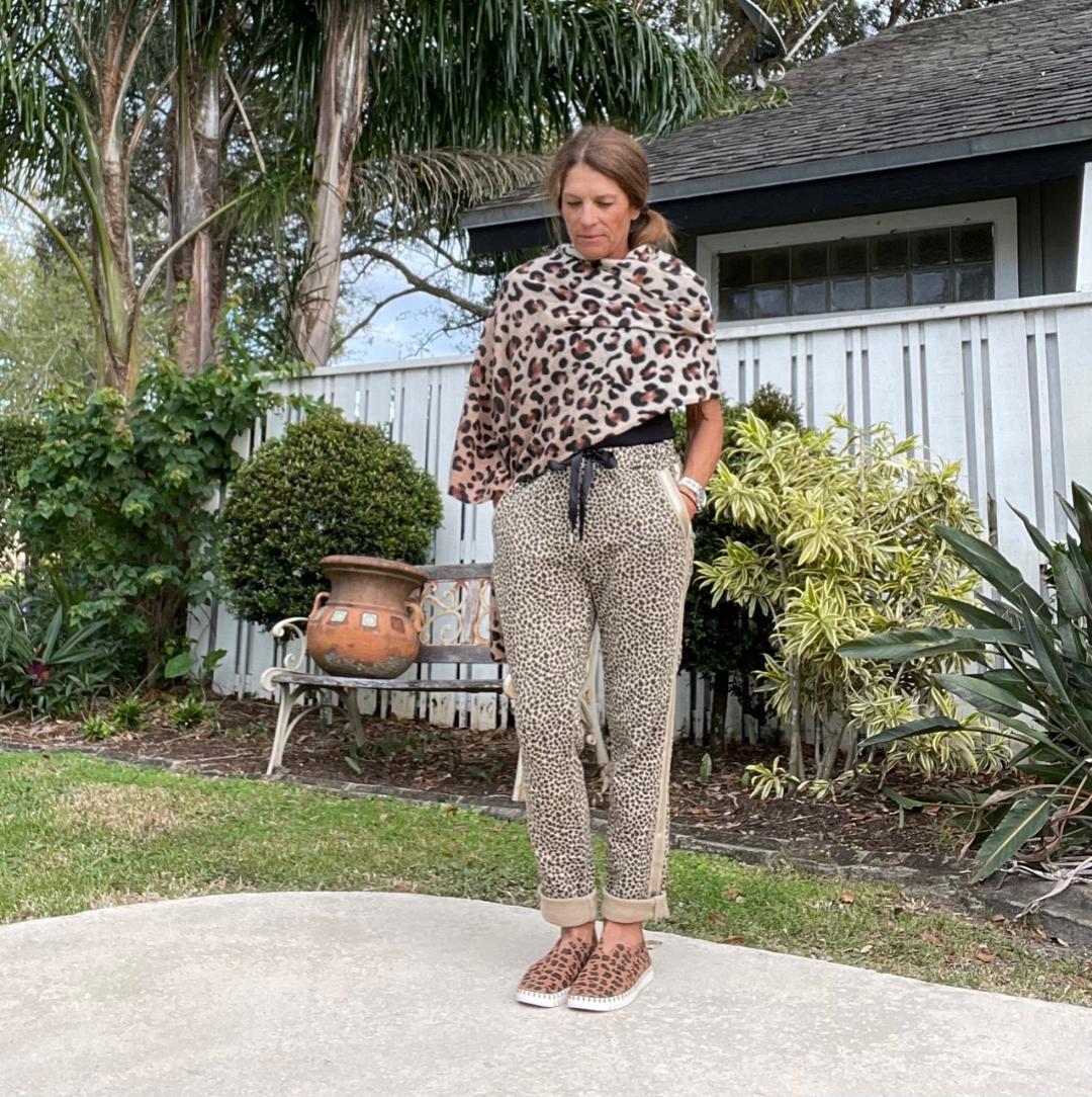 These joggers are made from soft, medium weight fabric with all over leopard print. A Relaxed fit with a drawstring waistband, pockets on both sides & back accent pocket.
