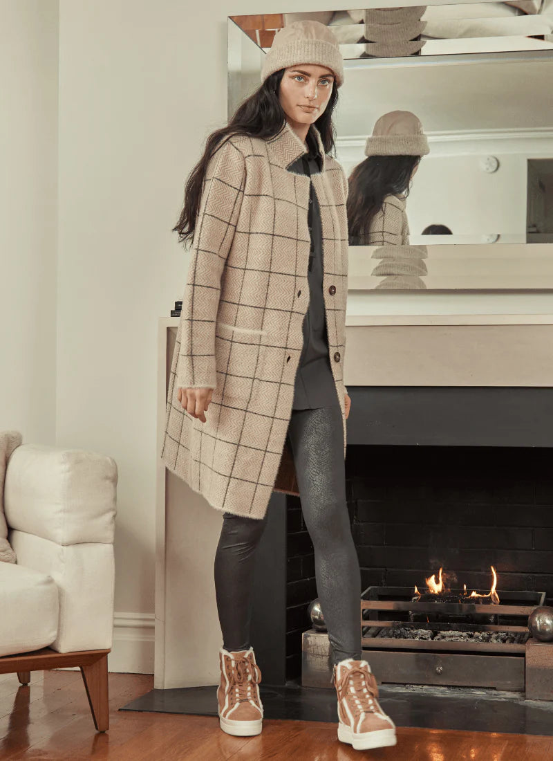 Offering pleasant 4-way stretch and a waist that’s 1.5 inches higher than Lyssé’s standard, the Patterned Matilda Foil Legging is crafted from a lightweight, yet contemporary Foiled Faux Leather. Crafted using a foil lamination technique on matte faux leather, these high-waisted faux leather leggings offer a smoothing, concealed patented waistband and full-length, season-less style. Light, comfortable and machine washable, these high-waisted leggings, in Burnt Umber Snake, perfectly partner with the Contrast Millie Top and black lace-up ankle boots.