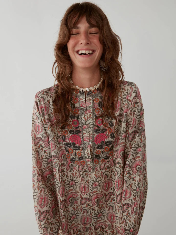 Inspired in Jaipur block print, the beautiful print is brought to life with the absolutely gorgeous embroidery along the chest and neck.