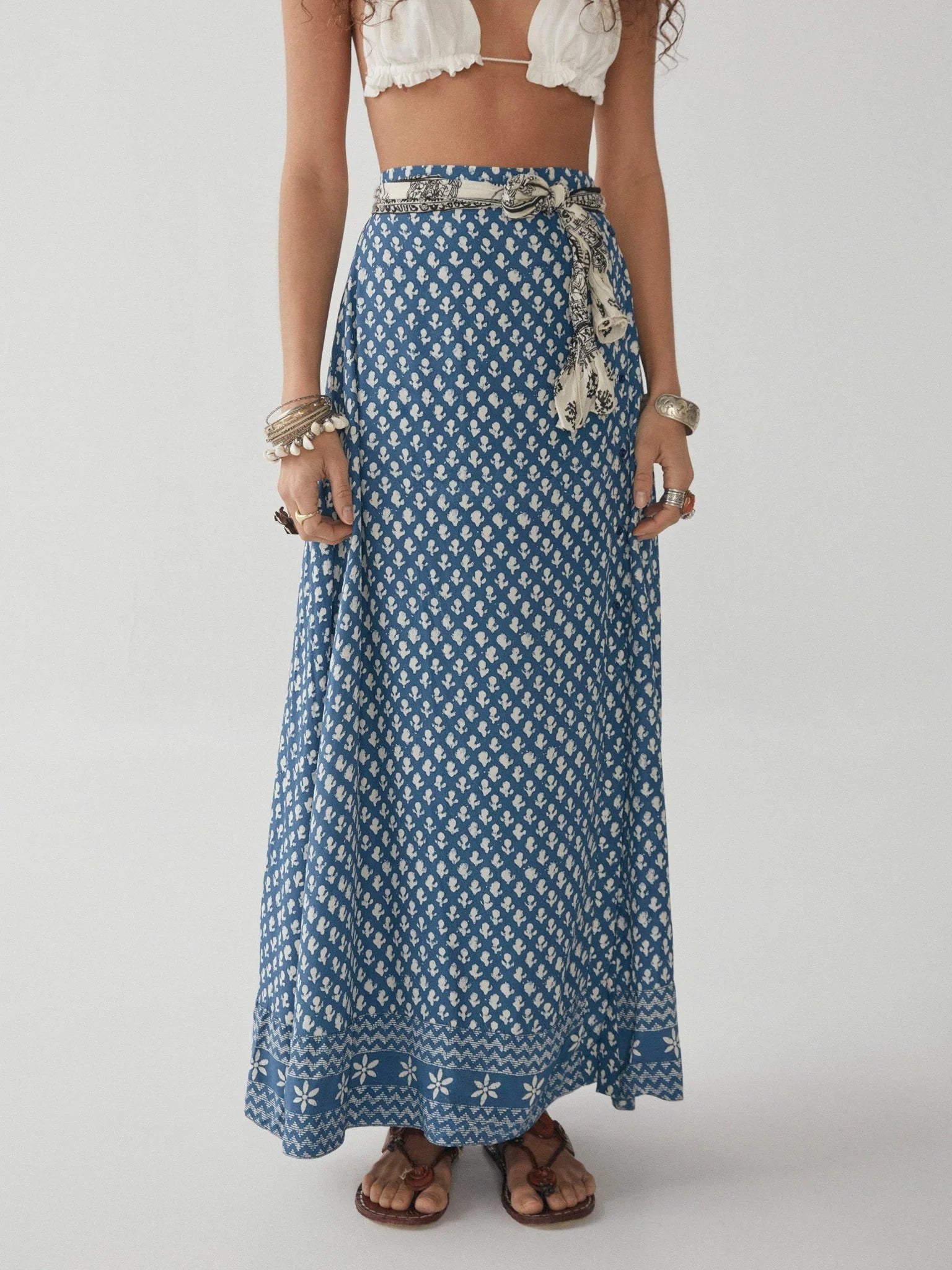 Cut in uber-soft viscose 'katrina crepe', the button-up skirt oozes vintage bohemian and an easy to combine piece this summer.