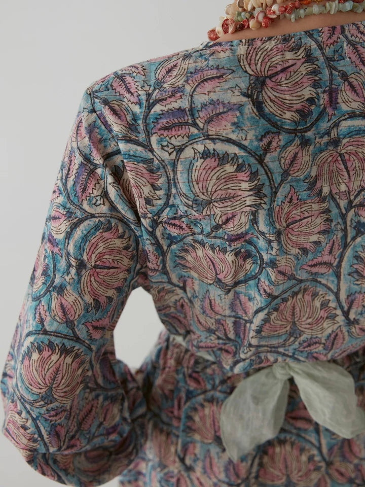 Rendered in super-soft, super-subtle cotton and bronze lurex fabric, the intended colour mis-prints and the lurex blend in perfectly to give this a vintage, understated look.