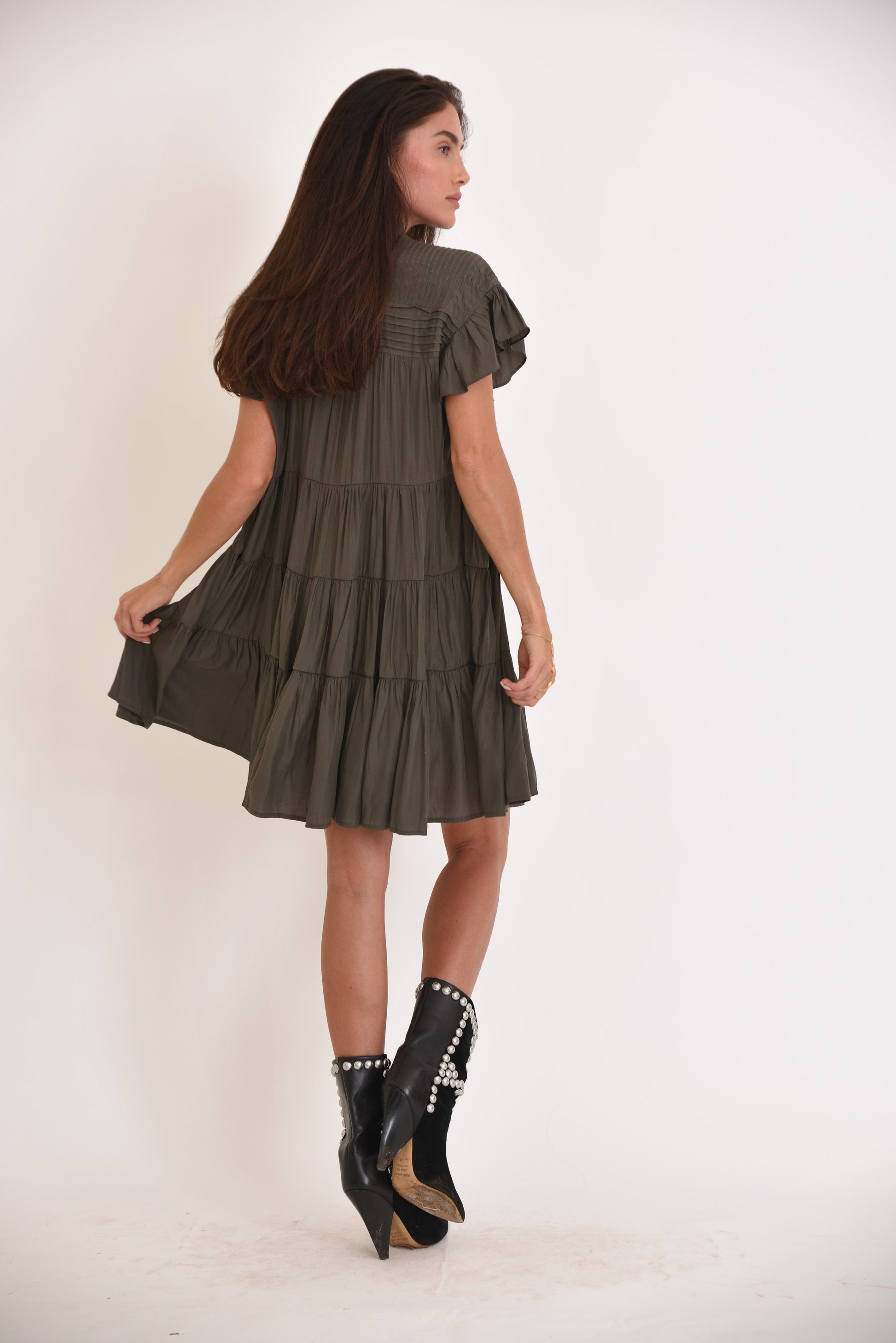 Meet our best selling, ever stylish, Vera dress. The most essential dress you will ever need. The pleated shape is flowy, feminine, and will become your go-to all year long. Rock it with sneakers, sandals or my fav, cowboy boots!