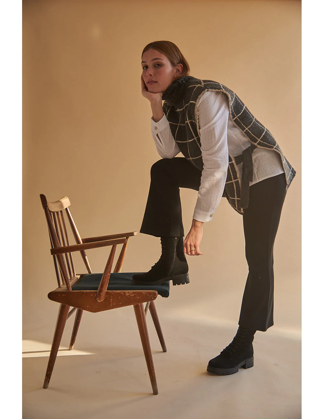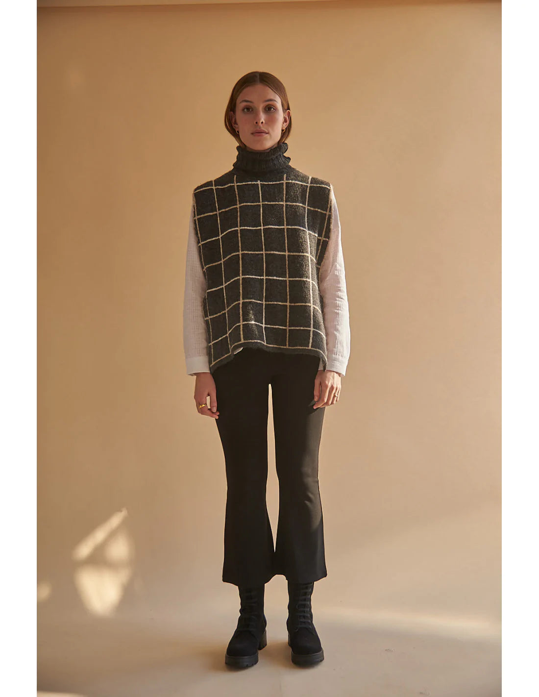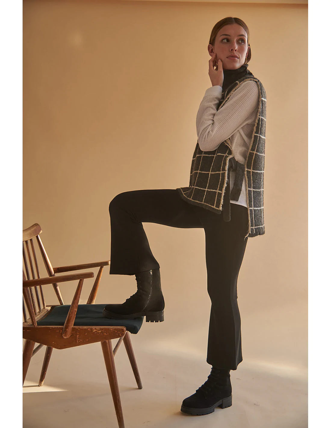 Flare style legging trousers with high rise. Slightly flared and narrow at the top. With elastic waistband, very comfortable to the body. Made in Portugal.