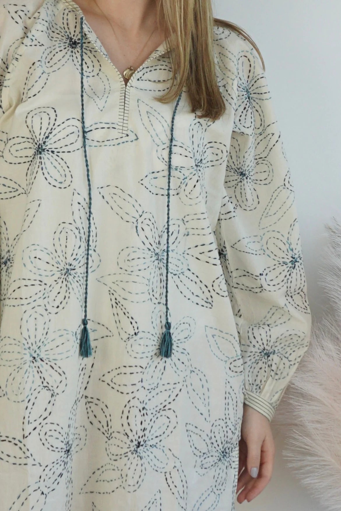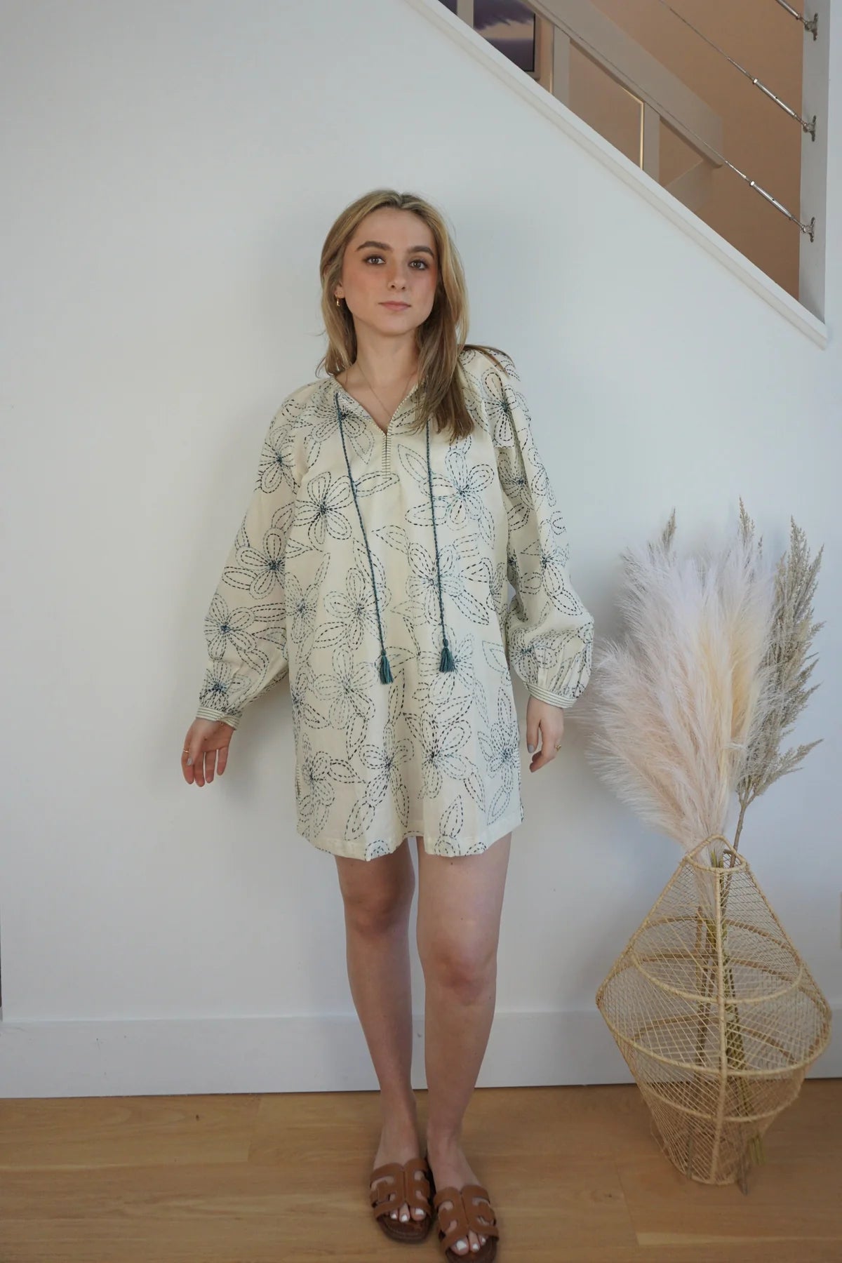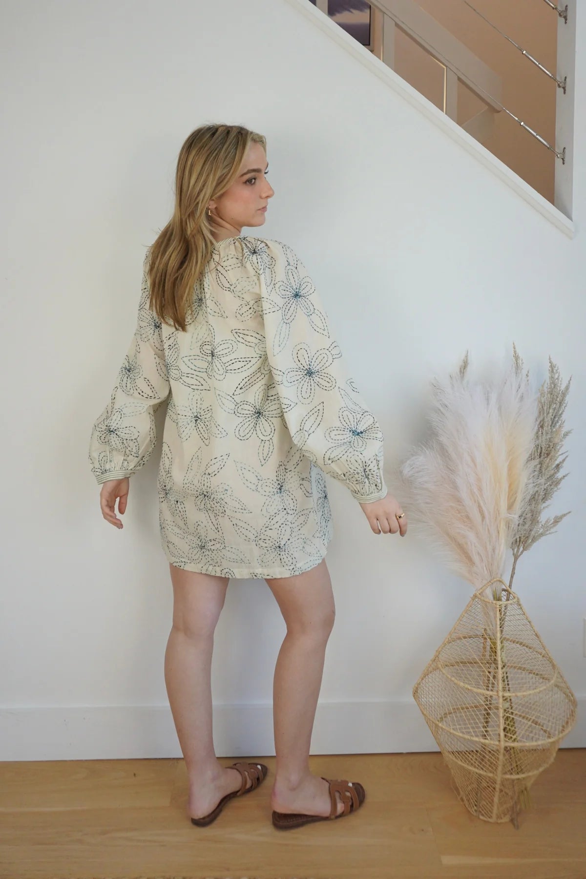Nibi MTK Gibson Mini Dress Blue Embroidery