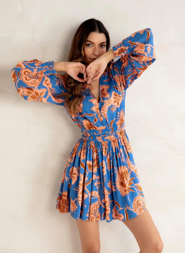 With Adele, you're going places. The voluminous sleeve with smocked wrist detail adds function and flexibility. Soft elastic comfortably cinches your waist and is instantly slimming. We especially love the back keyhole detail.