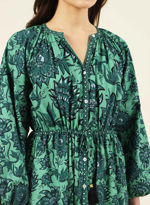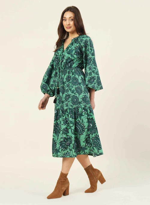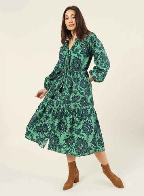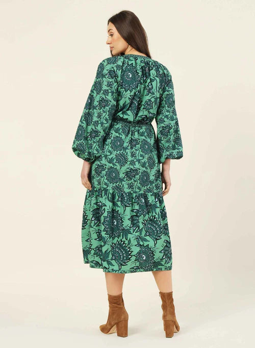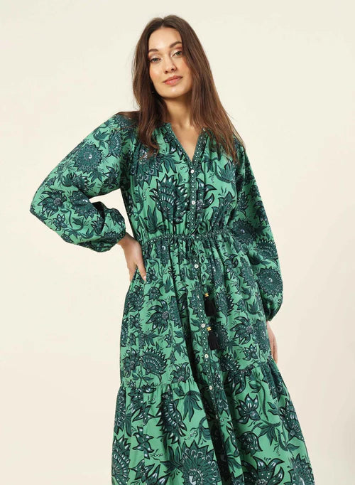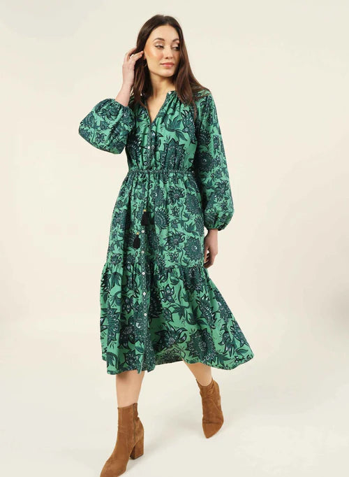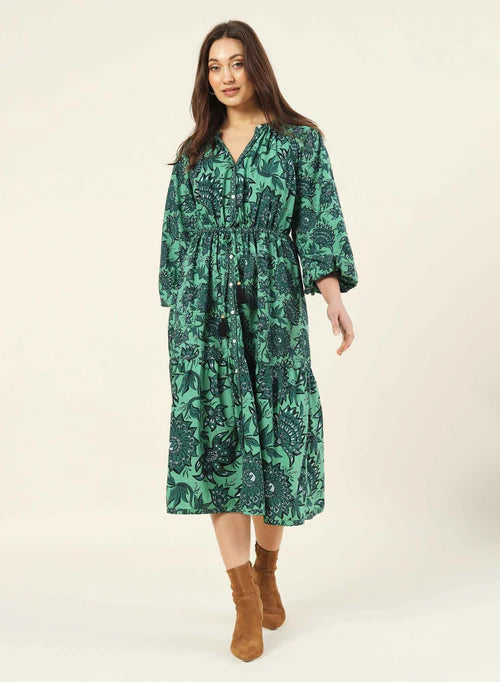 Keeping you cool and comfortable all day, the Emerson Midi is an easy outfit all on its own. Made with a breathable fabric, this stylish tiered midi dress features an adjustable tie at the waist, a button-down v-neck, and a light and airy silhouette. Perfect for warm weather days of sightseeing or errand-running.