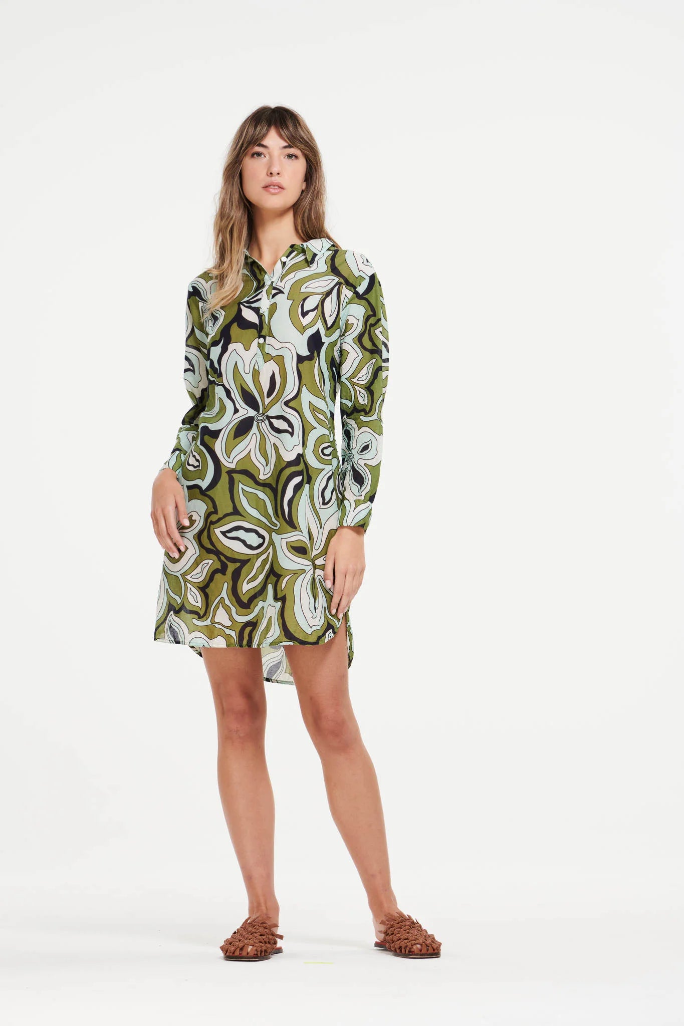 The Middy Gilli is a staple for effortless summer days. Crafted from 100% washed cotton, the classic shirt dress style features a slightly rounded hem with flattering side splits.