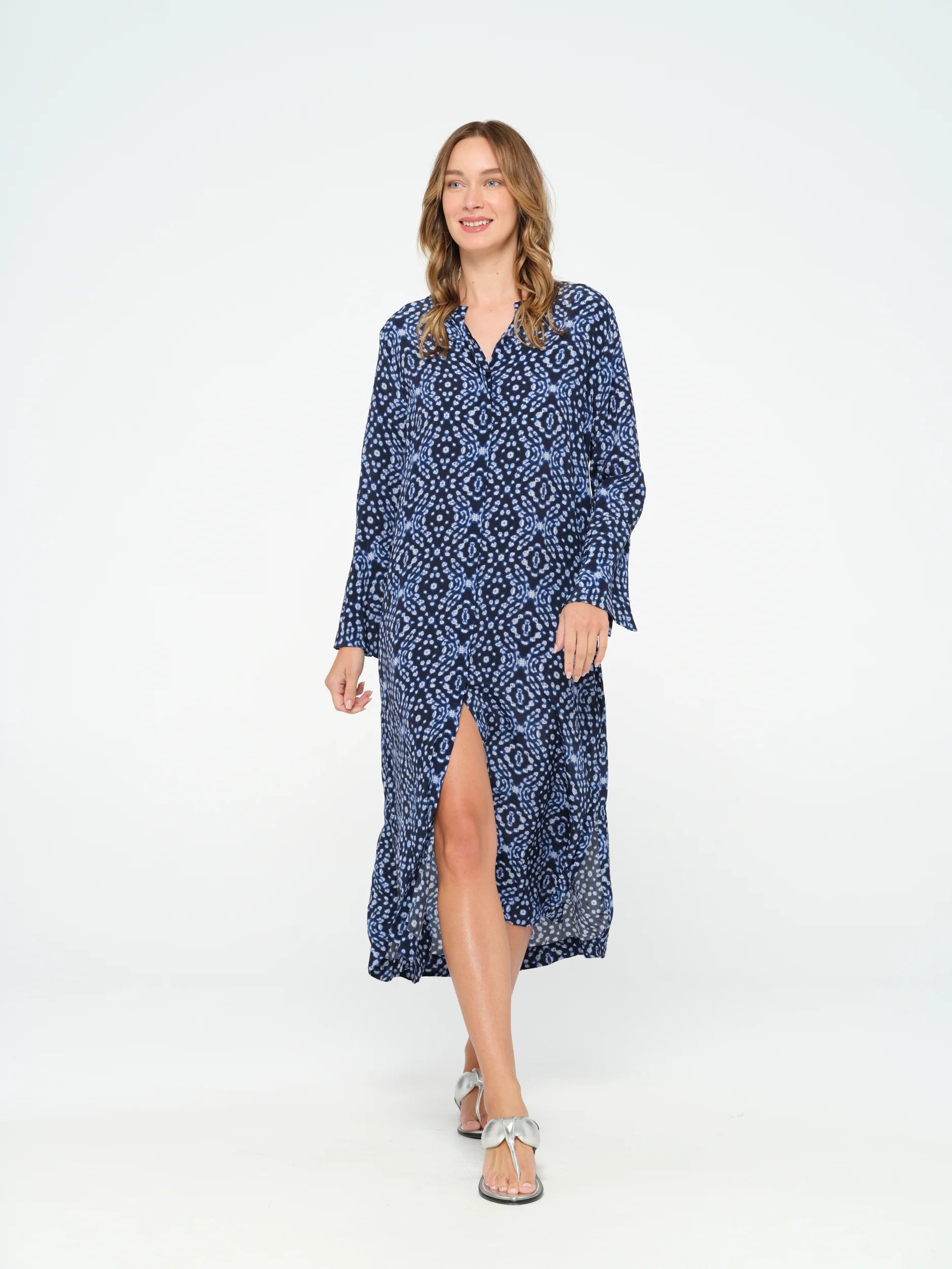 The India is the perfect wardrobe pick for stylish beach walks. Its floaty silhouette is cut from breathable viscose and arrives in a lightweight maxi-length design. A charming round neckline leading to its button through placket is complemented by fluted cuffs.