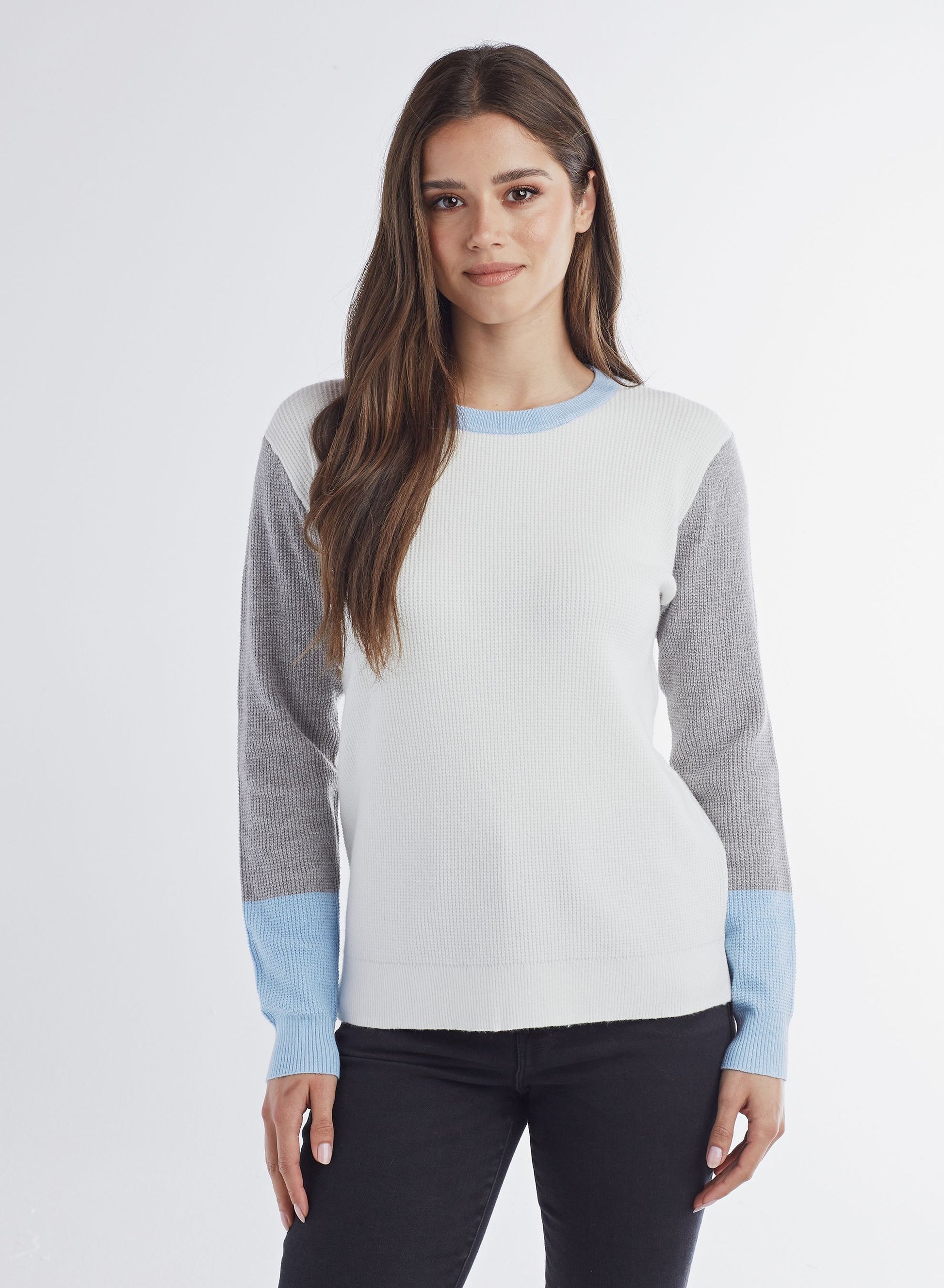 This fully fashioned crew neck sweater features a light, textured fabric that adds an extra layer of comfort and style to your wardrobe. With its expertly crafted design, this sweater is guaranteed to provide both functionality and fashion-forward appeal. Elevate your wardrobe with this must-have piece today