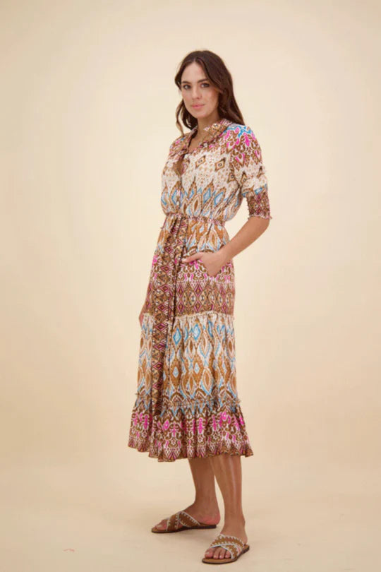 Forever bold and feminine, this sweet Rubyyaya Mumbai maxi features a zig-zag print and A-line silhouette with a frill hem for added dimension. Simply pair with sandals for an effortless look.