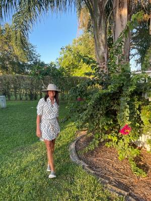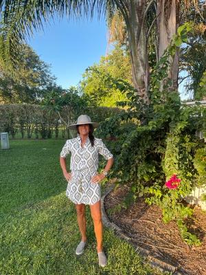 A sophisticated beach twist on a modern shirt dress adds a little elegance to any adventure. Crafted from soft flowing fabric that drapes beautifully, but still maintaining smart tailoring. Look for features including a neat button-through closure, classic collar and a tie belt at the waist. Step into this gorgeous bohemian diamond print with detailed beading for a sophisticated beach-street smart inspiration.