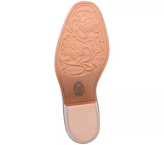 The Shelby is designed with a stovepipe shaft – a straighter, wider column shape than typical riding boots, so it’s easy to wear with wider leg pants. The gorgeous scalloped topline and stitching give it a western-inspired touch.