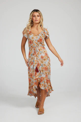 Short Sleeve, Classic Fit, Elastics Waist, Tassle Detail Waist Tie, High Low Hem.