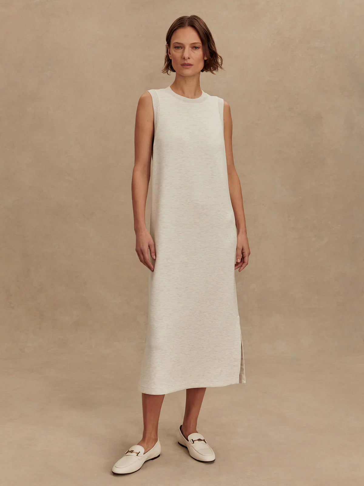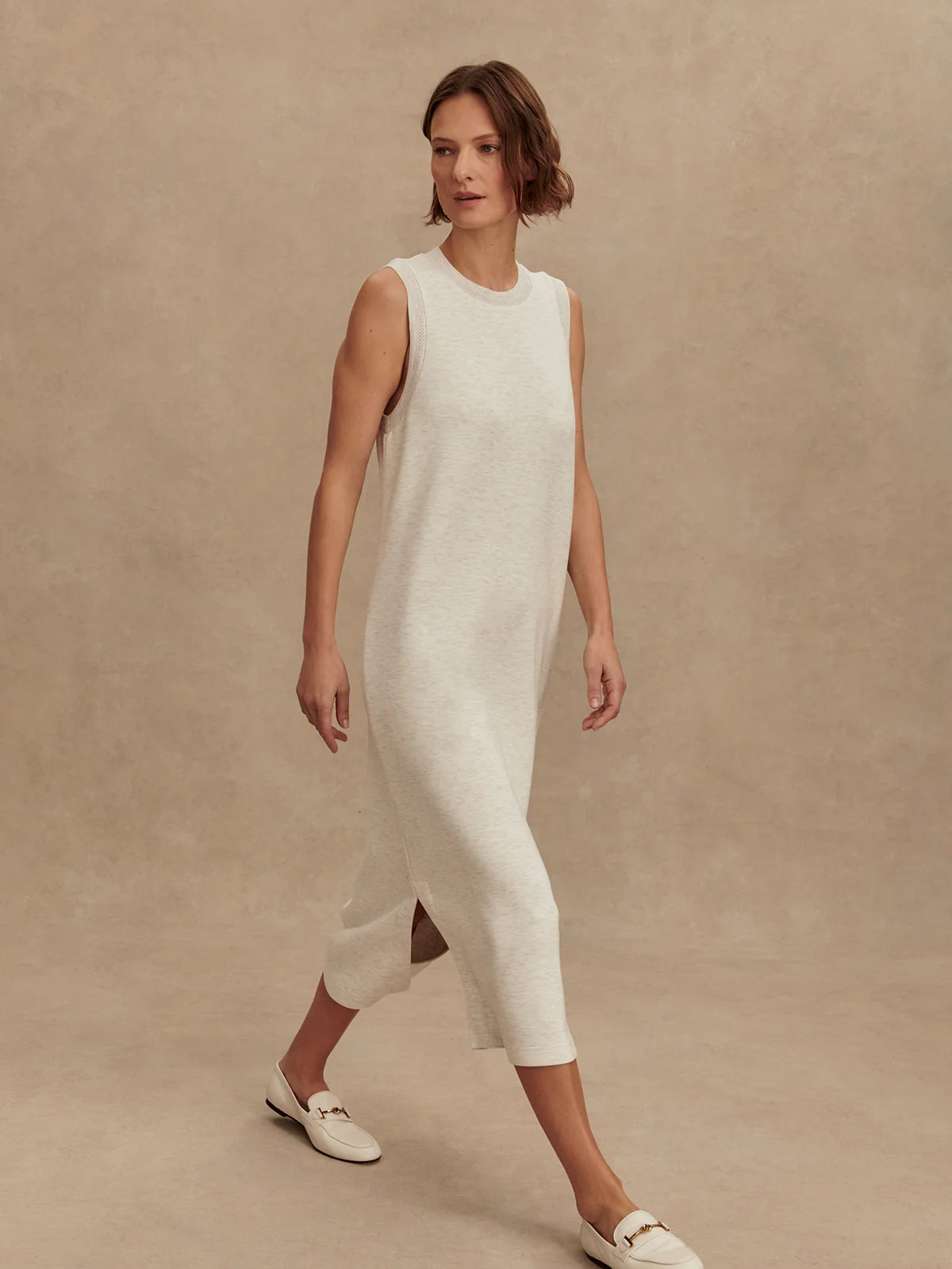 Crafted from DoubleSoft®, the Beatrice is cut to a chic midi length and a straight silhouette, featuring a classic crew neck with a decorative pointelle knitted trim on the neckline and armholes. The side split on both side seams with a sateen trim on the inside adds another intricate level of detailing.