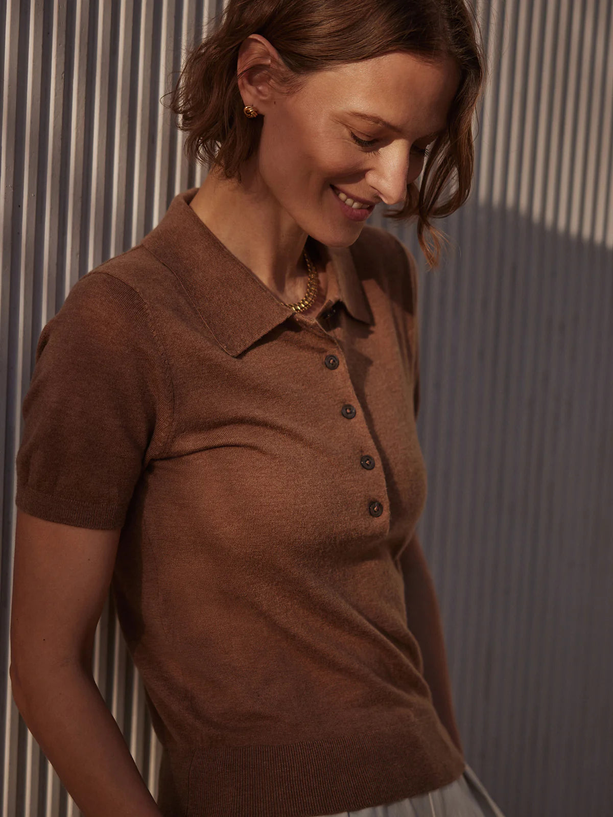 Crafted from a super light wool viscose blend, the Toni is an elevated take on your everyday shirt. It comes in an easy polo shape with a clean button placket front, set-in sleeves, and embroidery details above the hem. Perfect for transitional styling with contemporary pants.