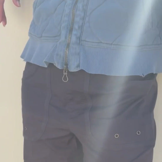 XCVI Osment Plush Quilted 4-Pocket Bomber Jacket Blue Echo