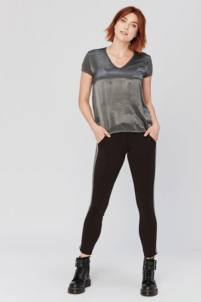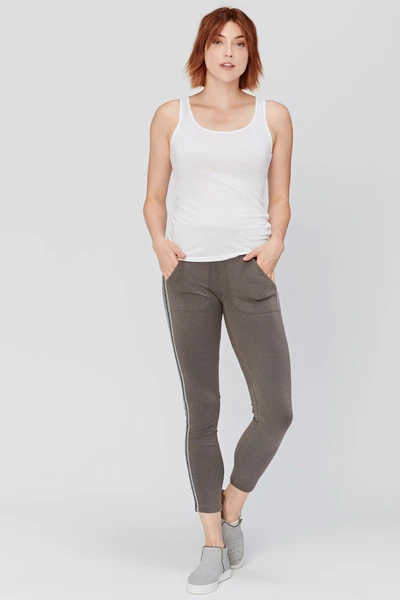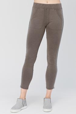 This ponit roma knit legging features stripe trim detail on side seams, pull-on elastic waistband, and front & back pockets.