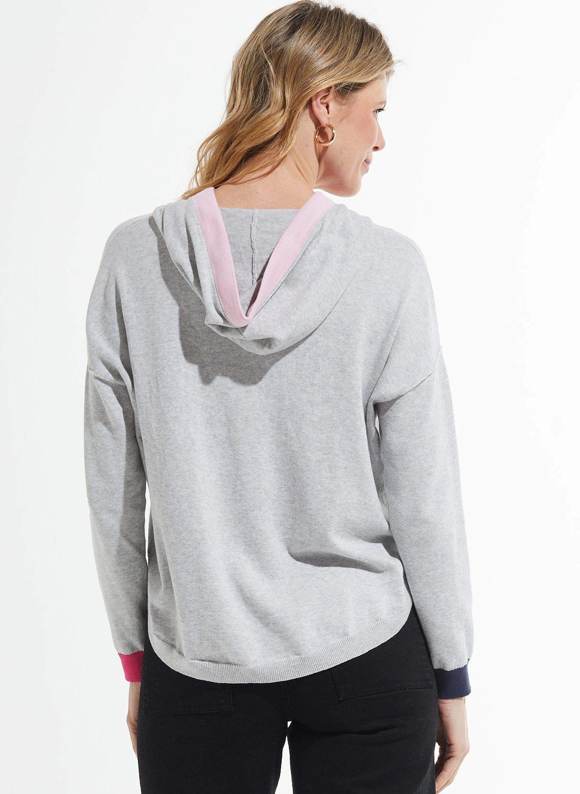 Zaket & Plover adds a whimsical touch to their sweaters and this hoodie is no exception. The Fun Hoodie is elevated in premium cotton with the the Zaket & Plover signature color block detail. Rainbow stripe drawstring adds a flair. Snuggle up in this comfortable, soft and relaxed sweater! This style also features long sleeves with color contrast stitching at cuffs, a softly curved hem and has a looser, relaxed fit.