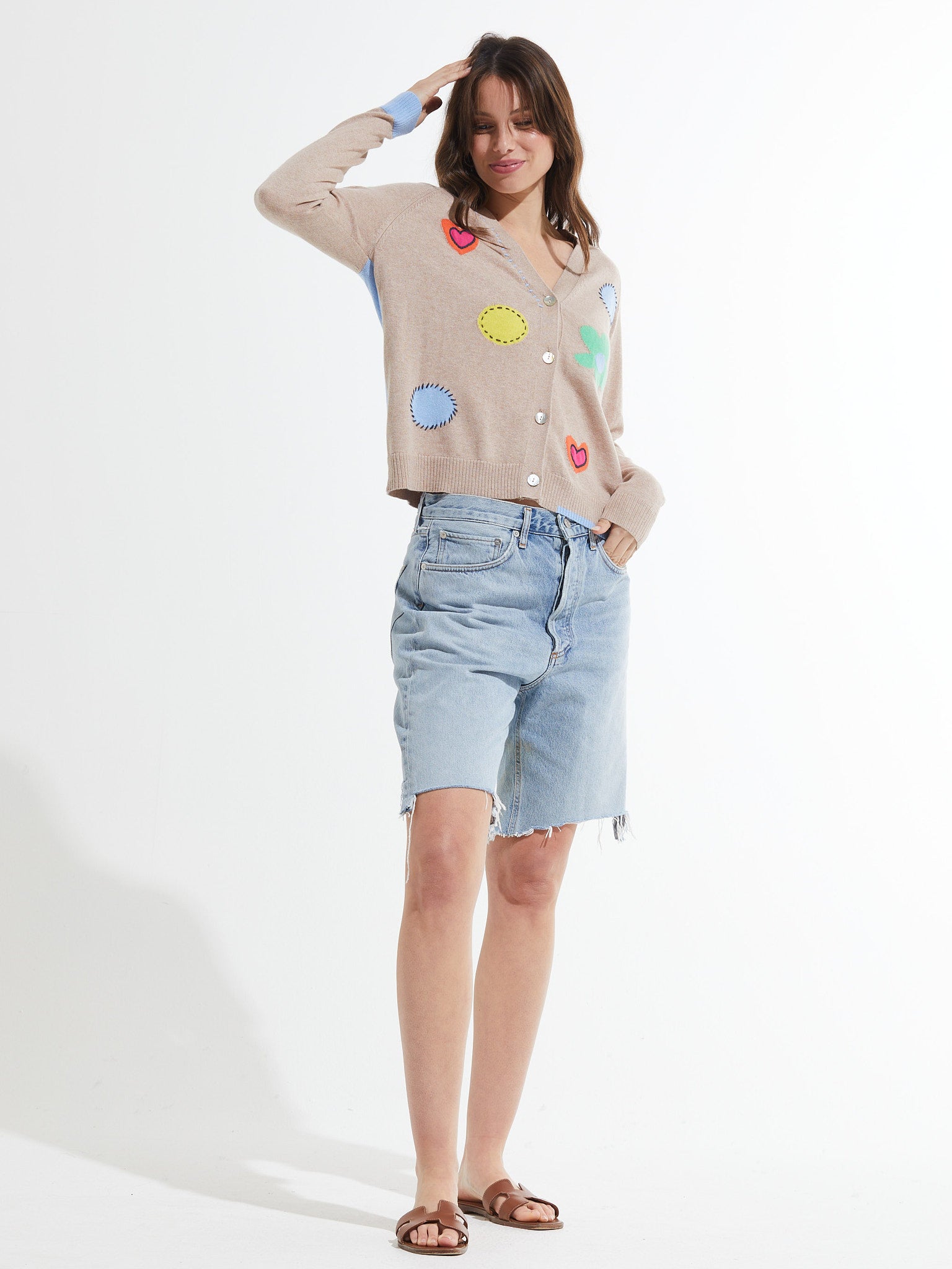 Zaket & Plover Flowers + Spots Cardigan Sweater Oat ZP7403